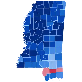 This was the first election since 1888 that a Republican won any county in Mississippi, and the first time since 1892 that a Democrat would lose any county in the state. Pearl River, Stone County, George County voted Republican for the first time since their creation.