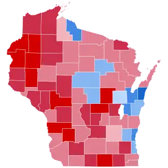 Hoover thus carried Wisconsin by a comfortable 9.24 percentage point margin, still a remarkable transformation from 1920 when the state had been Cox's weakest and Harding won by over 55 percentage points. Smith recouped the Third Party System Democratic counties: in entirely Catholic Marshfield Township which typically gave pre-1916 Democrats over ninety percent but gave Cox only 4 percent, Smith won all but two percent.[9] Hoover's ability to take the La Follette vote in anti-Catholic Scandinavian areas of western Wisconsin was critical in winning him the state.[13] As of 2024, this is the last election in which Douglas County voted for a Republican presidential candidate.[14]