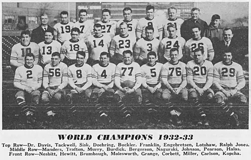 - ^ a b Richard Whittingham, The Chicago Bears: An Illustrated History. Chicago: Rand McNally & Co., 1979; p. 84.