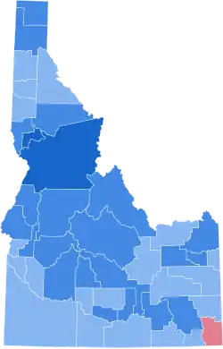 Idaho | 3,005 | 71.79% | 1,079 | 25.78% | 79 | 1.89% | 23 | 0.55% | 0 | 0.00% | 1,926 | 46.01% | 4,186 |