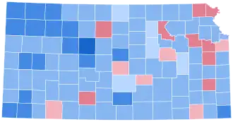 This remains the only occasion ever in which the Democratic presidential nominee has carried Chautauqua County.[6] As of the 2024 presidential election, this also remains the last time that the following counties have voted for a Democratic presidential candidate: Clay, Coffey, Dickinson, Elk, Jackson, Jefferson, Jewell, Linn, Logan, Marshall, Norton, Phillips, Pottawatomie, Republic, Smith, Wabaunsee,[a] Wallace, Washington, Wilson and Woodson.[7] This was also the Democratic Party's best performance (in terms of margin) in Kansas to date, thereby making Kansas the solitary state in which no Democrat has ever won by double digits.