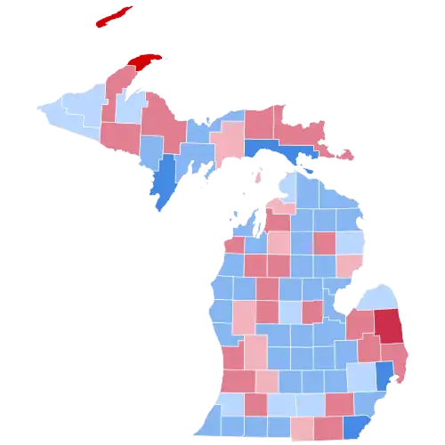 This is one of only four occasions where Michigan and Pennsylvania voted for different presidential candidates ever since the Democrats and Republicans became the two major parties in U.S. politics.[4][a] This was also the only one of the 32 elections between 1872 and 1996 where Houghton County did not vote for the statewide winner.