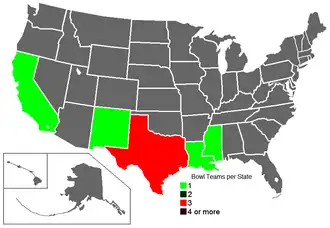 Number of bowl games per state | |||||||||||||||||||||||||||||||||||||||||||||||||