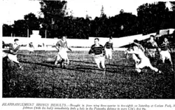 On August 5 at the ARL Referees’ Association meeting Mr. W. Mincham reported that the control board had ruled that a player leaving the field sick could not be replaced, but an injured player could be. The matter had arisen after an incident in a third grade match at Victoria Park. Mr Saunders, the referee said that the "ambulance man" had told him that the player was "suffering from concussion as well as influenza" and the matter had been misreported to the control board.[20]