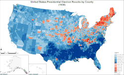 This was the last Democratic landslide in the West, as Democrats won every state except Kansas (Landon's home state) by more than 10%. West of the Great Plains States, Roosevelt only lost eight counties. Since 1936, only Richard Nixon in 1972 (winning all but 19 counties)[30] and Ronald Reagan in 1980 (winning all but twenty counties) have even approached such a disproportionate ratio.