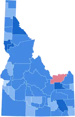 Idaho has since become a Republican stronghold; as of 2020, this election marks the last time that Ada County, Canyon County, Gooding County, Jerome County, Lincoln County, Payette County and Twin Falls County would vote for a Democratic presidential nominee,[5][6] the last time that a Democrat would carry the state by double digits, and the last time that the state would (by margin of victory) vote more Democratic than the nation as a whole.