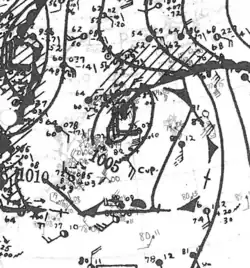 At 06:00 UTC on September 26, a tropical depression formed just north of Cuba. It intensified into a tropical storm by 18:00 UTC the following day based on reports from two ships. After attaining peak winds of 45 mph (72 km/h), the cyclone quickly transitioned to an extratropical cyclone by 12:00 UTC on September 28 as multiple fronts became intertwined with the circulation. The extratropical cyclone continued to parallel the U.S. East Coast, eventually making landfall in Newfoundland early on September 30. It strengthened into a hurricane-force low on October 1 but ultimately dissipated two days later as it merged with another cyclone and became increasingly elongated.[5]