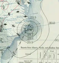 - ^ a b c Hurd, Willis E. (July 1937). "Small Tropical Disturbance of Late July, 1937" (PDF). American Meteorological Society (FTP). Boston, Massachusetts. pp. 281–282. Bibcode:1937MWRv...65R.281H. doi:10.1175/1520-0493(1937)65<281b:STDOLJ>2.0.CO;2. Retrieved July 22, 2019. (To view documents see Help:FTP)