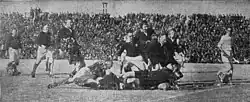 South Africa: G.H Brand, F.G Turner, G.P Lochner, P de Wet, D.O Williams, T.A Harris, D.H Craven (Captain), S.C Louw, J.W Lotz, M.M Louw, B.A du Toit, W.F Bergh, A.R Sherriff, W.E Bastard, L.C Strachan