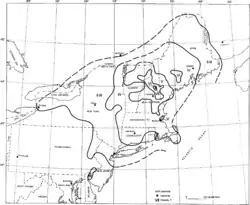 Reports of the 1940 earthquake extended as far north as Montreal and Quebec in Canada, and included Maine, New York, New Jersey, Pennsylvania, northeastern Delaware, Massachusetts, Vermont and Rhode Island.[9] The epicenter was next to the Ossipee Mountains, near the town of Ossipee, New Hampshire. These mountains are the remains of an ancient volcanic ring dike.[10] A similar ring dike can be seen in southern New Hampshire at Pawtuckaway State Park.