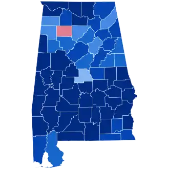 Cullman | 5,603 | 64.51% | 3,057 | 35.19% | 11 | 0.13% | 11 | 0.13% | 4 | 0.05% | 2,546 | 29.31% | 8,686 |