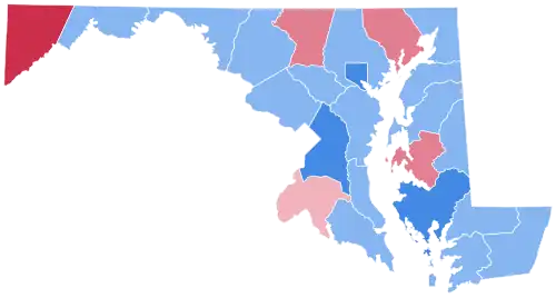 Wicomico | 7,198 | 59.92% | 4,741 | 39.47% | 73 | 0.61% | 2,457 | 20.45% | 12,012 |