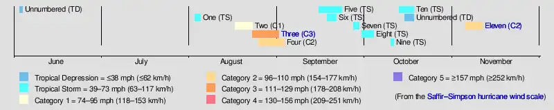 - ^ A major hurricane is a storm that ranks as Category 3 or higher on the Saffir–Simpson scale.[3]