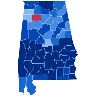 Cullman | 3,898 | 63.43% | 2,202 | 35.83% | 41 | 0.67% | 4 | 0.07% | 1,696 | 27.60% | 6,145 |