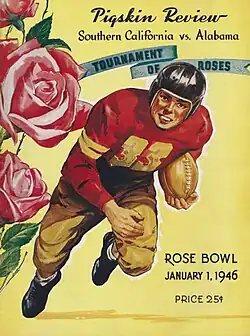 The game matched the undefeated Crimson Tide of the University of Alabama of the Southeastern Conference (SEC) and the #7 Trojans of the University of Southern California of the Pacific Coast Conference (PCC).[4] The Tide defeated the underdog Trojans 34–14.[5][3][6][7] It was Alabama's sixth trip to the Rose Bowl, and as of the 2024-25 season, their last trip to Pasadena. It was Frank Thomas' final bowl trip as head coach. (Their 2020 season Rose Bowl, part until their College Football Playoff semifinal appearance in 2021, was held in the Dallas-Fort Worth metroplex.)