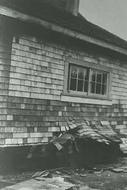 The earthquake caused significant movement among structures, moving one 300-foot (91 m) wall about 35 feet (11 m) and caused one home to shift for 5 feet (1.5 m) off its foundation.[9] The total affected area in Canada and the United States was about 260,000 km2 (100,000 sq mi).[12]