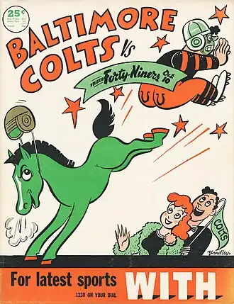 - ^ Baltimore Colts vs. Frisco Forty-Niners, Oct 10. Baltimore, MD: Baltimore Colts Football Club, Inc., 1948; pp. 20–21.