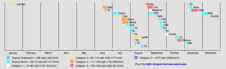 The 1949 Pacific typhoon season has no official bounds; it ran year-round in 1949, but most tropical cyclones tend to form in the northwestern Pacific Ocean between June and December. These dates conventionally delimit the period of each year when most tropical cyclones form in the northwestern Pacific Ocean.