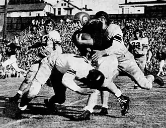 - ^ Dick Strite (October 22, 1950). "Saints Come Back to Upset Webfoots for First Triumph: Ducks Fall Before Gael Passing 18-13 As 9,752 Supporters Watch". Eugene Register-Guard. p. 11 – via Newspapers.com.