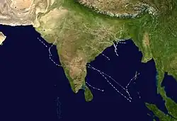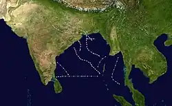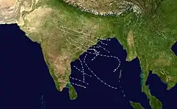 - ^ a b c d e f g h i j k l m n o p India Weather Review Annual Summary Part C Storms and Depressions 1950 (PDF) (Report). India Meteorological Department. 1951. pp. 1–12. Archived from the original (PDF) on 2019-06-14. Retrieved June 24, 2020.