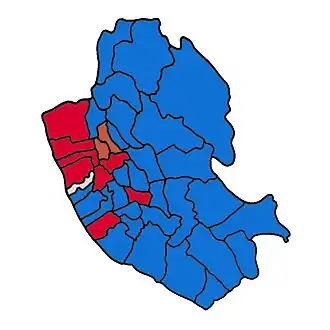 ![]() Map of Liverpool showing wards won (first placed party)[1] |