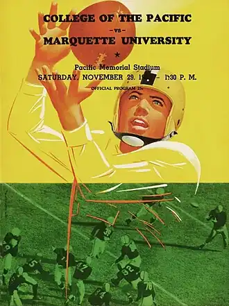 ^ Bob Whittington, "Marquette Rallies to Gain 27–27 Tie with Pac-Cats: McCormick is Injured After Smashing Olszewski's Ground Gaining Record," Stockton Record , Dec. 1, 1952, pp. 29-31 +Stats .