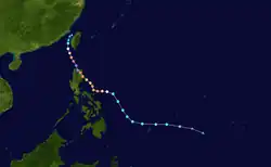Typhoon Trix formed near Micronesia on October 15, 1965, tracking southwest. It intensified rapidly, becoming a tropical storm on October 16 and a typhoon shortly after. Trix reached peak intensity as a Category 4 super typhoon with winds of 220 km/h (135 mph) and a central pressure of 965 hPa on October 20, while approaching the Philippines. Weakening slightly, Trix made landfall in the Bicol Region on October 21, traversing the central Philippines. It emerged into the South China Sea, briefly re-intensifying to Category 4 strength before weakening again. Trix made final landfall near Quảng Ngãi, Vietnam, as a tropical storm on October 25. The JMA ceased advisories inland, while the JTWC tracked its remnants into Thailand.