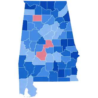 Talladega | 5,028 | 58.18% | 3,588 | 41.52% | 26 | 0.30% | 1,440 | 16.66% | 8,642 |