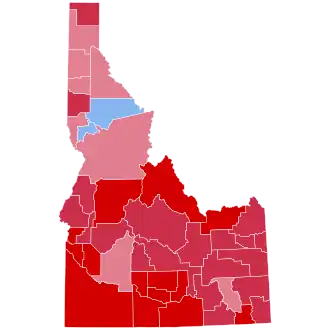 Twin Falls | 14,471 | 76.07% | 4,548 | 23.91% | 4 | 0.02% | 9,923 | 52.16% | 19,023 |