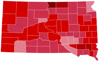 With 69.27% of the popular vote, South Dakota would be Eisenhower's third strongest state after Vermont and neighboring North Dakota.[3] As of the 2024 presidential election, this is the last election in which Oglala Lakota County, known until 2015 as Shannon County and home to the Pine Ridge Indian Reservation, voted for a Republican presidential candidate.[4] This is also the last time any presidential candidate has won every single county in the state, which occurred once before in 1904.