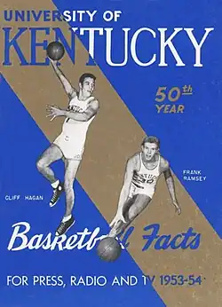 This team finished unbeaten 25–0, and though it won the Southeastern Conference title and could have played in the NCAA tournament, it chose not to because star players Frank Ramsey, Cliff Hagan and Lou Tsioropoulos were ruled ineligible because they had already graduated. That rule has since been abolished, but it prevented the Wildcats from competing for the national championship.