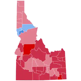 Twin Falls | 12,097 | 68.10% | 5,666 | 31.90% | 6,431 | 36.20% | 17,763 | ||