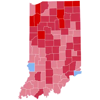 Tippecanoe | 23,776 | 70.25% | 9,995 | 29.53% | 72 | 0.21% | 13,781 | 40.72% | 33,843 |