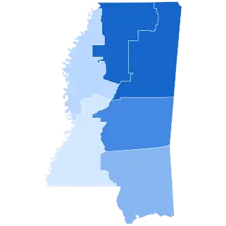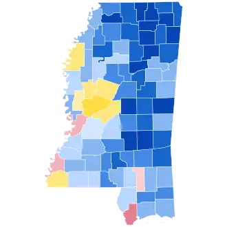 No Democratic presidential nominee has carried the following counties since Stevenson did so in this election: Lamar, Lauderdale, Lincoln, Lowndes, Newton, Rankin, Scott and Simpson.[16] Stevenson is also the last Democrat to carry Clarke County outright, but Jimmy Carter and Ronald Reagan tied there with 3,303 votes apiece in 1980.[17] Oktibbeha County would not vote Democratic again until Barack Obama carried it in 2008. This is also the last election in which the Democratic nominee carried Mississippi without winning the presidency or that a Republican won two terms without ever winning the state.