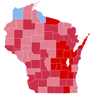 As it turned out, despite the doubts of the Boston Daily Globe Eisenhower slightly improved upon his 1952 margin in Wisconsin: although he did lose some support in the farming areas, he gained upon his 1952 vote in Wisconsin's cities due to increased Catholic support, and carried all but two northern counties. Wisconsin’s result was 8.34% more Republican than the nation-at-large. As of 2020, this remains the last time a Republican has carried Wisconsin by double digits, as the state would trend Democratic beginning with the 1958 midterm elections, although Democrats have subsequently won Wisconsin by double digits just three times – Lyndon B. Johnson in 1964, Bill Clinton in 1996 and Barack Obama in 2008.[18] This is also the last election as of 2020 in which Ashland County, Dane County, Milwaukee County, and Portage County voted for a Republican presidential candidate.[19]