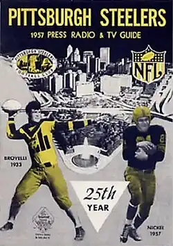 The 1957 season was the Pittsburgh Steelers' 25th in the National Football League (NFL). For the first time, the Steelers' yellow helmets sported uniform numbers.[1] They used these uniforms through the 1961 season.[2]