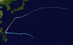 Typhoon Kathy developed just east of the Philippines on October 21. It moved across the islands and entered the South China Sea. There, the system strengthened, and subsequently dissipated on October 27.