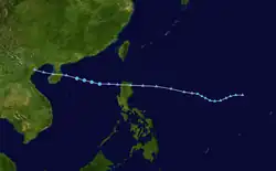 A tropical disturbance in the Philippine Sea was first indicated on August 13, taking a slight dip south on August 15, before generally going in a west direction. The system made its first landfall over Luzon at 12:00 UTC of August 17, before intensifying into a tropical depression that day. The depression continued its journey westward before reaching inland at Hainan on August 19, prior to weakening back into a tropical disturbance. The system entered the Beibu Gulf and made its final landfall over northern Vietnam, and dissipated on August 20.[23]