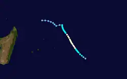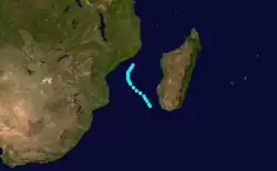 Clara, a slow-moving tropical cyclone, lasted from January 1 to January 6 and, twice, nearly made landfall. On New Year's Day, it formed near Madagascar. Moving west-northwestward, Clara reached its peak intensity of 85 mph (50 km/h). As it dissipated, Clara's remnants drifted over Mozambique.[1]