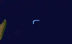 On February 7, 1961, the final storm of the season, Eva, formed. However, it soon encountered unfavorable conditions, and dissipated on February 10, 3 days later. Its 1-minute peak intensity was 55 km/h (35 mph).[1]