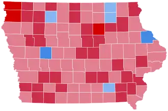 Iowa was won by incumbent Vice President Richard Nixon (R–California), running with United States Ambassador to the United Nations Henry Cabot Lodge Jr., with 56.71% of the popular vote, against Senator John F. Kennedy (D–Massachusetts), running with Senator Lyndon B. Johnson, with 43.22% of the popular vote.[3][4] As of the 2024 presidential election, this is the last election in which Johnson County, home to Iowa City and the University of Iowa, voted for a Republican presidential candidate.[5]