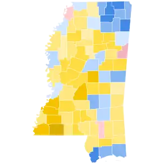 Despite Kennedy’s statewide defeat being only the second for a national Democrat in Mississippi since Reconstruction, this remains the last election when the coastal, French-influenced counties of Harrison and Jackson have voted for a Democratic presidential nominee.[18] The following landlocked counties have also never voted Democratic since: Choctaw, Jones and Smith.[18] Warren County would not vote Democratic again until Barack Obama won it in 2012.[19]