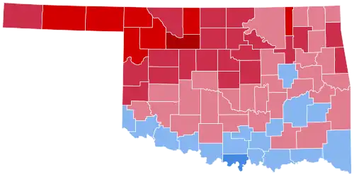 With 59.02% of the popular vote, Oklahoma would prove to be Nixon's third strongest state in 1960 after Nebraska and Kansas.[3] This election marked the first time since statehood that a Democrat won the presidency without carrying Oklahoma. Oklahoma was one of six states that swung towards Republicans compared to 1956, alongside Alabama, Georgia, Mississippi, South Carolina, and Tennessee.[4]