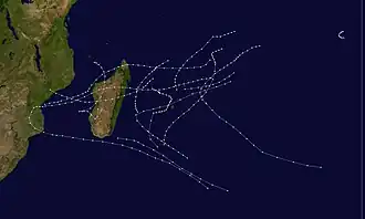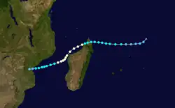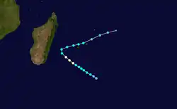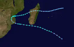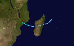 The storm struck Madagascar and moved across the island, later crossing the Mozambique Channel and striking eastern Mozambique. The storm recurved to the east, passing south of Madagascar.[1]