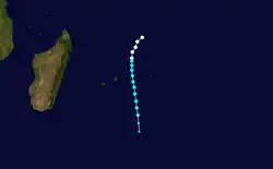 Delia originated near Diego Garcia and moved southwestward, passing north of St. Brandon, east of Madagascar, and west of Réunion. It lasted from January 12 to January 20.[9]