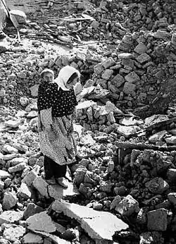 Rescue operators suggested that an aerial and on-land search should be initiated to help victims. Officials expressed worries that people had gone for over a week with no aid.[11] Iranian wrestling star Gholamreza Takhti gathered blankets, money, and food for victims and transported them by trucks.[12] Because government response was slow, students at the University of Tehran took matters into their own hands. After gathering supplies, the students organized an effort to dispatch medical students and interns to the site of the disaster. Their teams were however blocked by Iranian National Guard members who had been commanded to kill any civilians who tried to help victims; writer Marcello di Cintio cites in Poets and Pahlevans: A Journey into the Heart of Iran that the "Shah was not about to let a crowd of students draw attention to his inept relief efforts".[13]