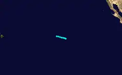 As the previous storm was dissipating, another tropical storm developed to its west. Lasting only two days, it dissipated on August 22 about halfway between Hawaii and the west coast of Mexico.[3]