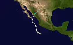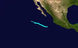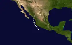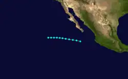 On September 26, a tropical storm developed off the southwest coast of Mexico. The storm moved to the west-northwest for several days, dissipating on September 30.[3]