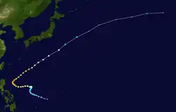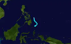 After that, the storm went on a slow weakening process, weakening to a minimal tropical storm on December 3. The next advisory, Mary was downgraded to a tropical depression, and the Joint Typhoon Warning Center ceased tracking the storm.[41] Mary did not affect land in its entire lifetime.[2]