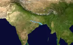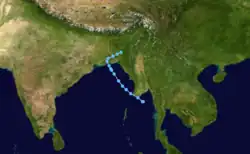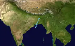 Produced torrential rains over parts of eastern India, peaking at 910 mm (36 in) in Cherrapunji.[11]